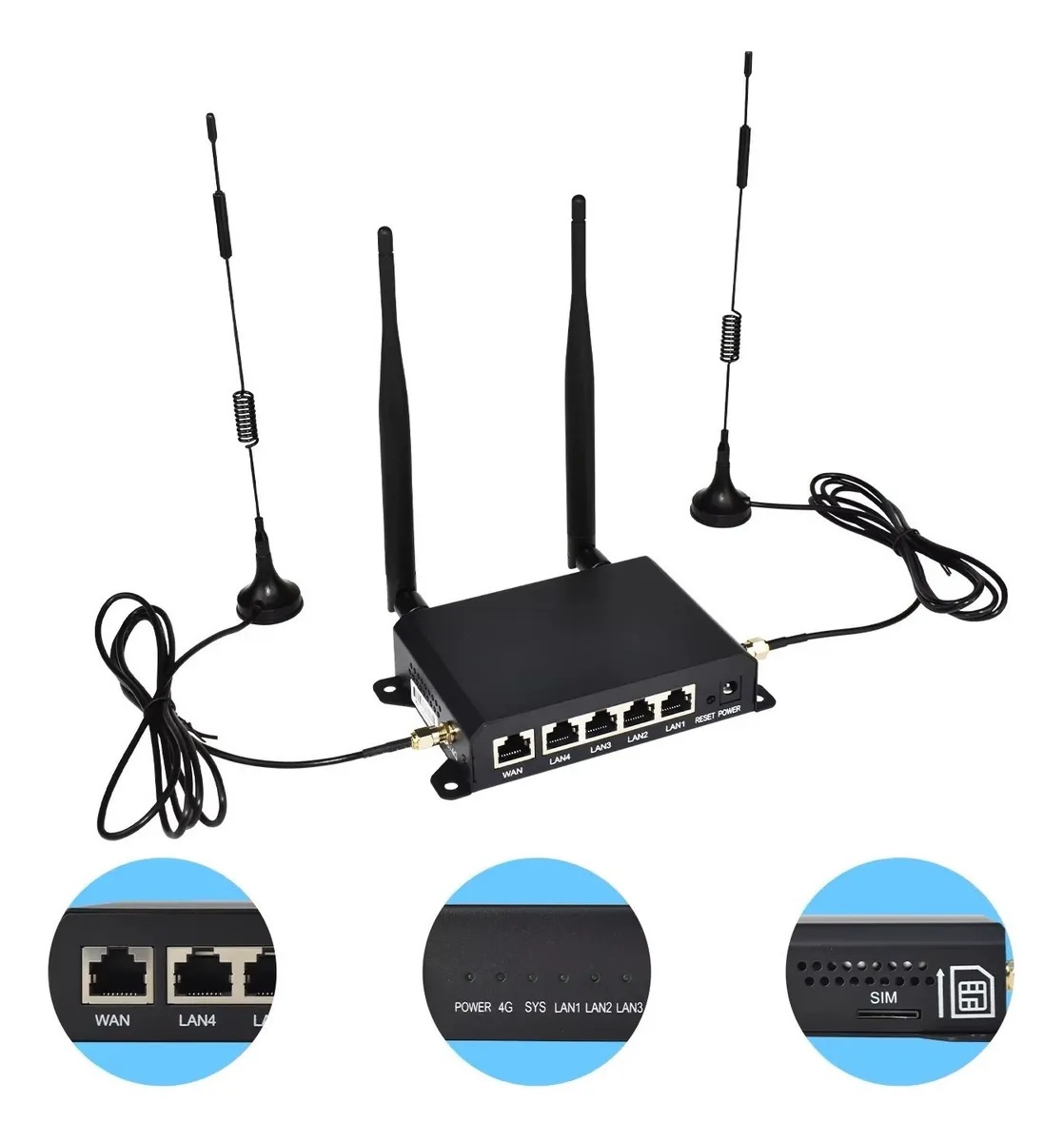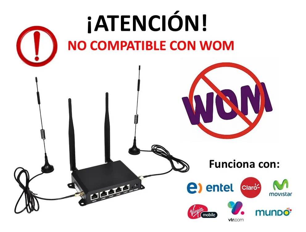 Descripción: Router/Módem 4G LTE con funcionalidad **Estándar** (4 LAN + WAN). Posee las mismas características de hardware que el modelo superior, pero debido a **las bandas de frecuencia** que soporta, **no es compatible con la compañía WOM**. Opera eficientemente con las bandas de Movistar, Entel, Claro y otras operadoras, ofreciendo un excelente rendimiento a un costo más accesible.
